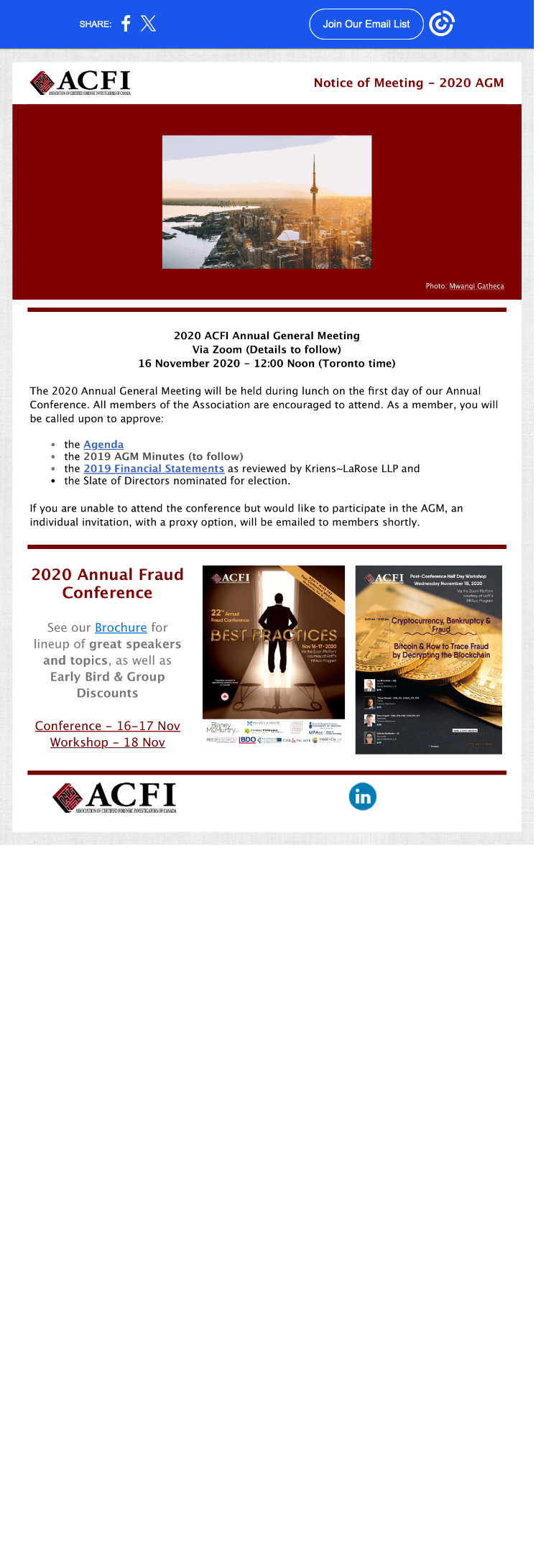 2020 ACFI Annual General MeetingVia Zoom (Details to follow)16 November 2020 – 12:00 Noon (Toronto time)